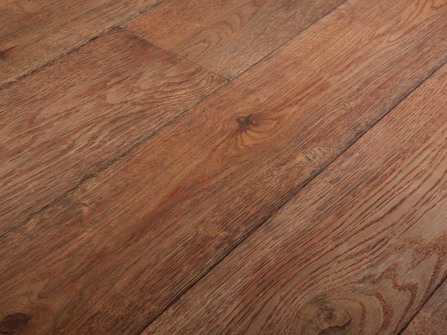 Treated: scraped surface This rich floor catches the eye with flamed colour effects on roughed up spots, and hand-scraped edges.